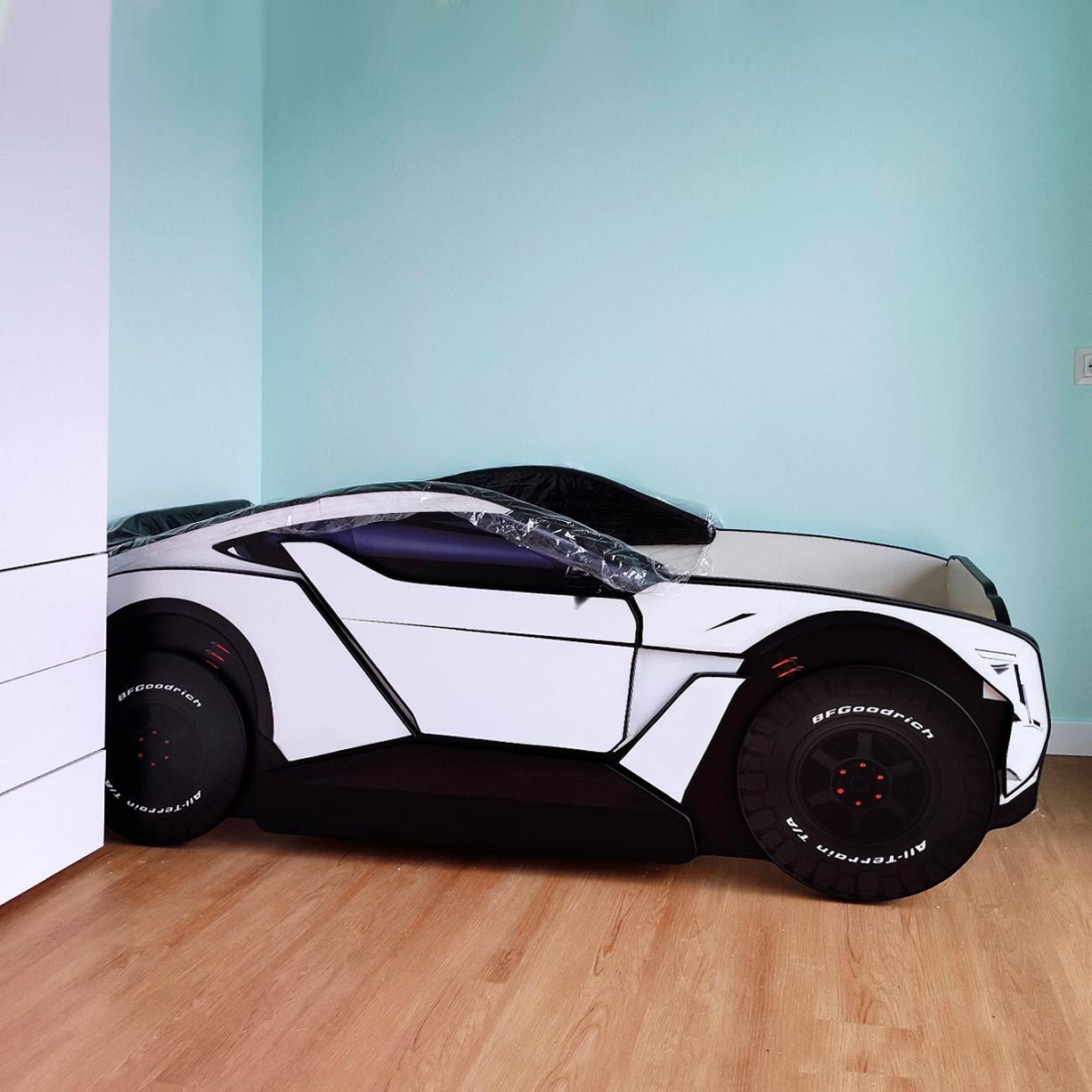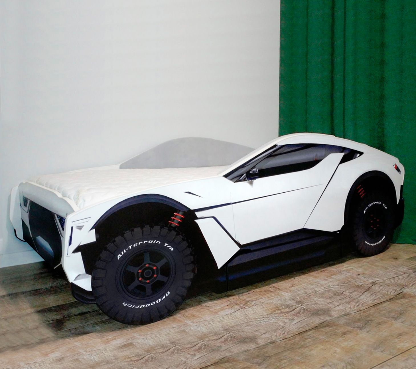 Ліжко машина Allroad White (Олроад) повністю виготовлене з екологічного МДФ, каркас - з натуральної деревини.