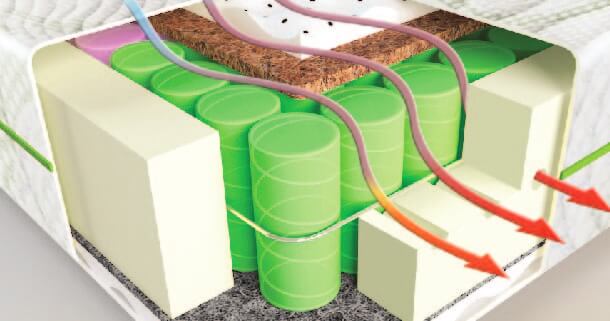 Многоуровневая пружинная система регулирует жесткость благодаря сжатию пружин с разным количеством рабочих витков. Напряжение, которое образуется в пружинах, обеспечивает различную жесткость и упругость в заданных зонах.