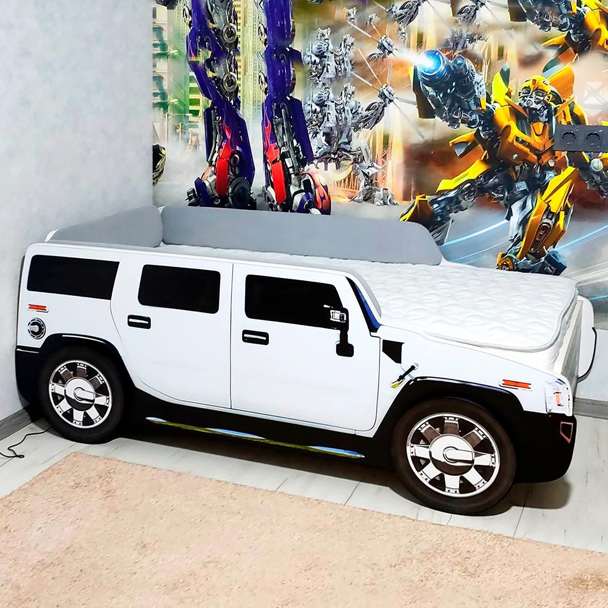 Уникальный дизайн вдохновлен видом автомобиля Хаммер. Это идеальное решение для создания впечатляющей и захватывающей атмосферы в детской. Эта кровать-машина предлагает не только комфортный сон, но и возможность воплотить самые яркие фантазии вашего малыша.