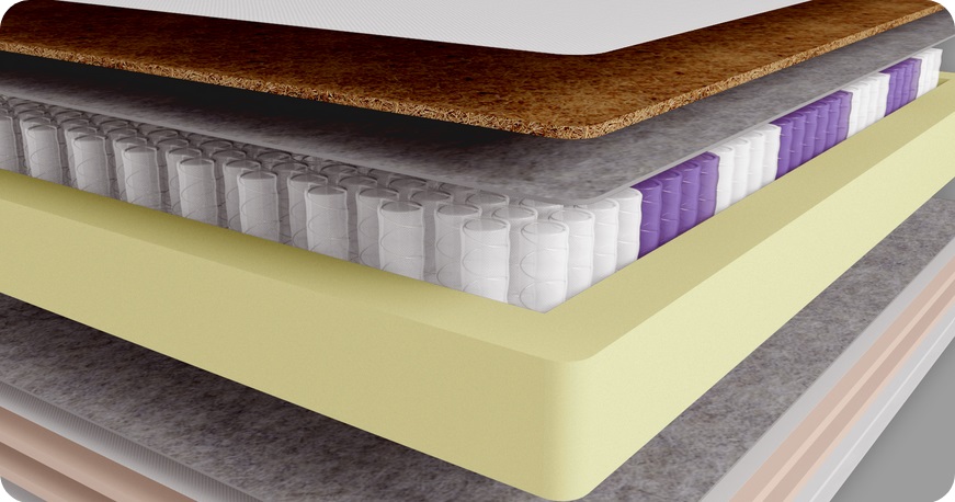 Protect felt - матеріал, виготовлений із пресованих бавовняних і синтетичних волокон, слугує захисним бар’єром між пружинним блоком та м’якими шарами матраца.