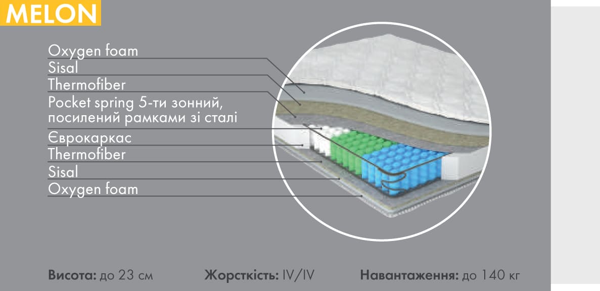 Матеріали, які були використані для виготовлення матраца Мелон, відрізняються надійністю і високою якістю.