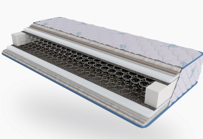 Міцна, довговічна і надійна основа матраца.Така конструкція сприяє рівномірному розподілу ваги тіла людини по всій поверхні матрацата забезпечує оптимальну підтримку і природне положення хребта.
