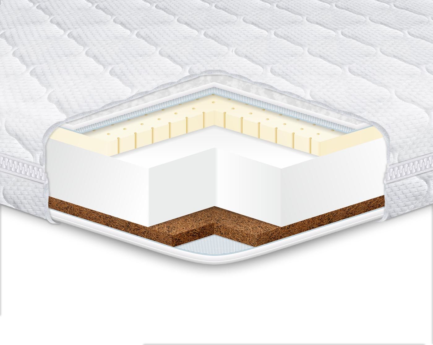 - кокосовая стружка – естественный гипоаллергенный материал, изготовленный из волокон кокосового ореха. Он обеспечивает упругость и жесткость спального места, а также устойчив к гниению;