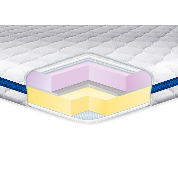 Особенности модели: Данная модель двухсторонняя со средней жесткостью и относительно мягкой благодаря сочетанию двух слоев пены AIRYFOAM и MEMORY. MEMORY придает топперу мягкость, а пена AIRYFOAM – упругость.
